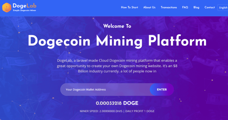DogeLab is a Laravel-built Cloud Dogecoin mining platform that enables a great opportunity to build your own Dogecoin mining website. The world is becoming cashless, and crypto is becoming more popular day by day. It is currently an $8 billion industry. Many people are now interested in running their Doge mining platform.